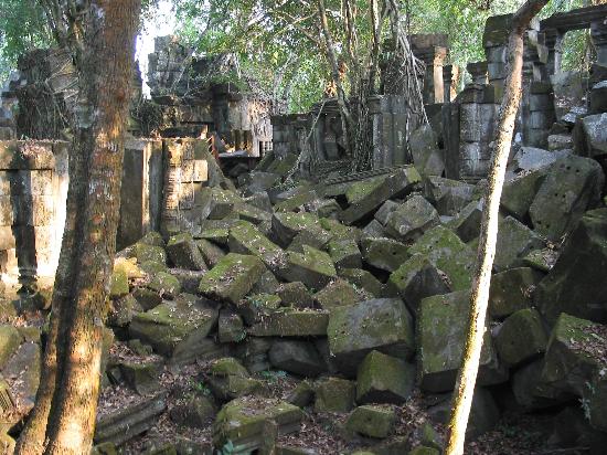 遺跡は、野生の虎や象が出没するため、なかなか修復が進まないまま、森の中にひっそりと埋もれている正真正銘の荒廃地帯で、寺院の屋根の上や瓦礫の間を飛んだりはねたりよじ登ったりしながら、見学できるところも、探検家気分でなかなか楽しいものなのだそうだ。